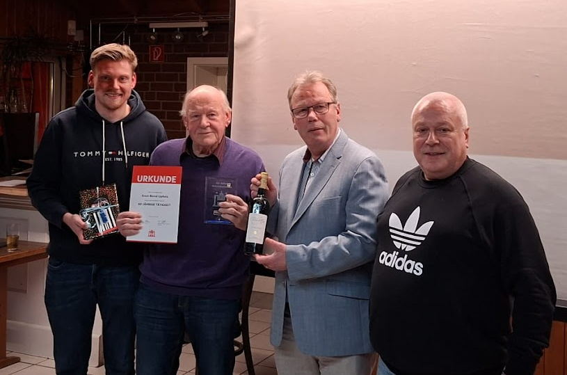Eine ganz besondere Ehrung erhält Ernst-Bernd Lipholz (TSV Sparrieshoop) für beeindruckende 60 Jahre Schiedsrichter-Tätigkeit. Seine Leidenschaft für den Fußball entdeckte er bereits 1957, als er dem TSV Sparrieshoop beitrat — ein Verein, dem er bis heute treu geblieben ist. Anfang der 1960er-Jahre entschied er sich, selbst zur Pfeife zu greifen, als der Verein dringend Schiedsrichter benötigte. 1966 legte er seine Prüfung erfolgreich ab und begann damit eine außergewöhnliche Laufbahn, die bis heute anhält.